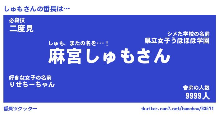 | ヘコむあだ名 | 『しゅもー』『つくし』『しゅ太郎』 |