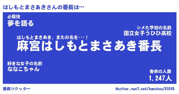 | 伝説のあだ名 | 『不死鳥のスナイパーはしもとまさあき』 |