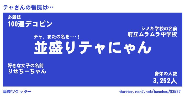 | ファンタジー風あだ名 | 『テャフェル』『エターナルテャー』 |