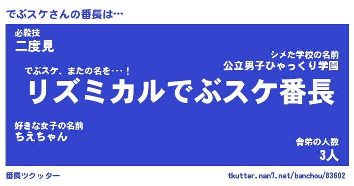 | 料理風あだ名 | 『ほっこり♪でぶスケの味噌そぼろ煮』 |