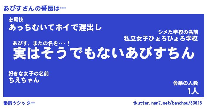 | 伝説のあだ名 | 『封印されしスナイパーあびす』 |
