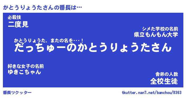 | ヒーロー風カッコイイあだ名 | 『スーパーカトウリョウタ』 |