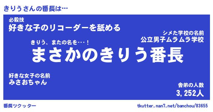 | 肩書あだ名 | 『きりうCEO』『きりう総理大臣』 |