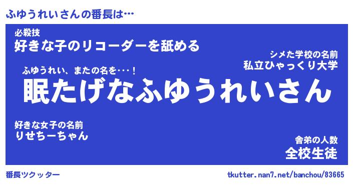 | ファンタジー風あだ名 | 『フユフェル』『エターナルフユウレイー』 |