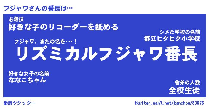 | 意味不明あだ名 | 『ペロリンフジャワ』『永久保存フジャワ』 |