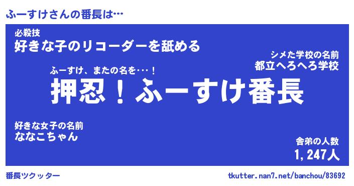 | 意味不明あだ名 | 『ペロリンふーすけ』『永久保存ふーすけ』 |