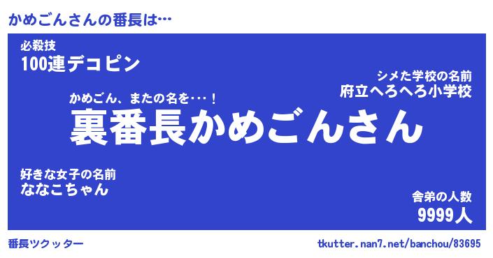 | 意味不明あだ名 | 『ペロリンかめごん』『永久保存かめごん』 |
