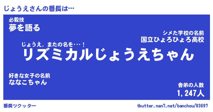 | 意味不明あだ名 | 『ペロリンじょうえ』『永久保存じょうえ』 |