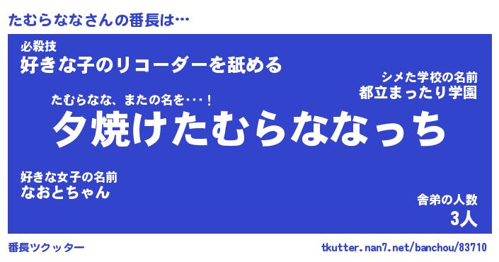 | 肩書あだ名 | 『たむらなな店長』『たむらなな総理大臣』 |