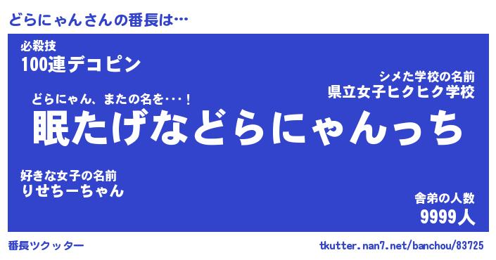 | 意味不明あだ名 | 『ペロリンどらにゃん』 |