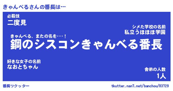| 肩書あだ名 | 『きゃんべる御曹司』『きゃんべる班長』 |
