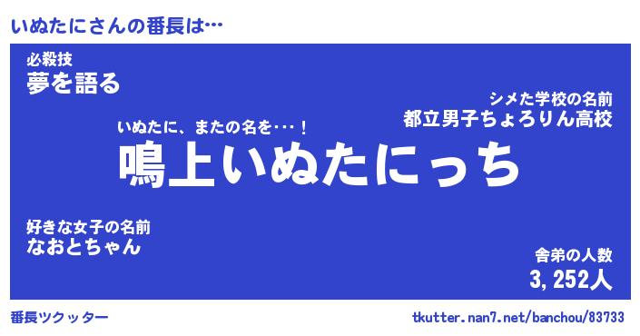 | 肩書あだ名 | 『いぬたに店長』『いぬたに大統領』 |