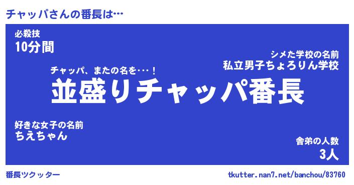 | ヘコむあだ名 | 『チャにー』『なまこ酢』『チャを』 |