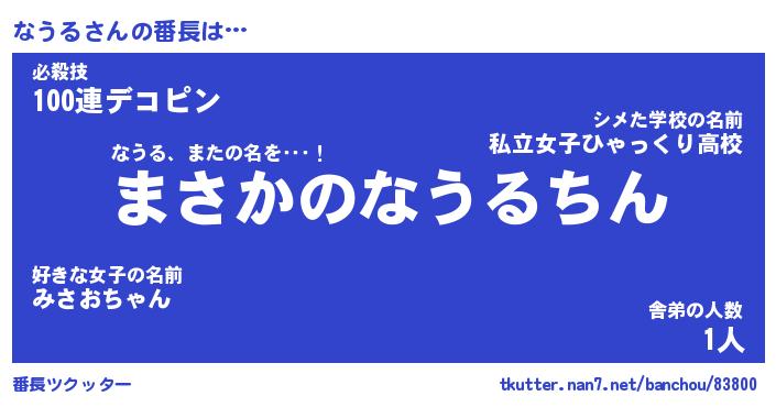 | ヒーロー風カッコイイあだ名 | 『スーパーナウル』『ウルトラなうるマン』 |