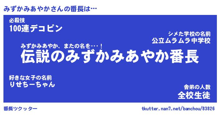| ヒーロー風カッコイイあだ名 | 『スーパーミズカミアヤカ』 |
