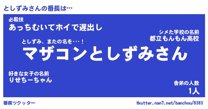 | 伝説のあだ名 | 『封印されしスナイパーとしずみ』 |