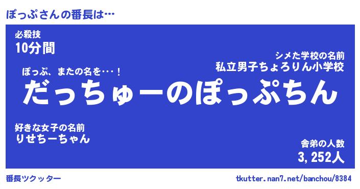| 2回繰り返すあだ名 | 『ぽっぽっ』『ぽぽっっ』『ぬめぬめ』 |