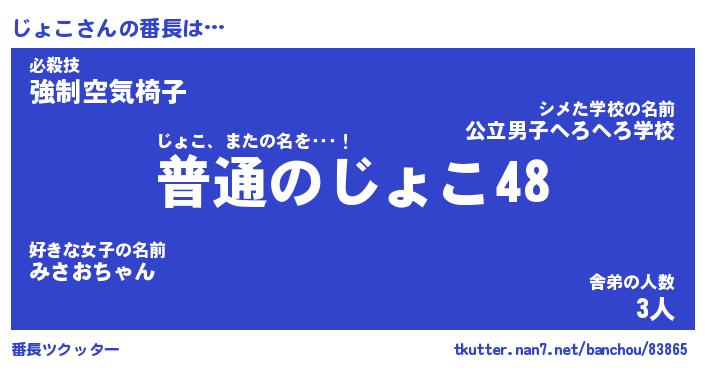 | 意味不明あだ名 | 『ペロリンじょこ』『じょこフォーエバー』 |