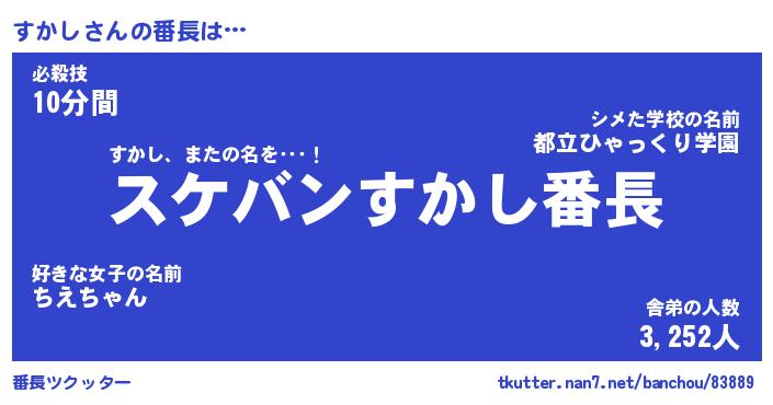 | ヒーロー風カッコイイあだ名 | 『スーパースカシ』『ウルトラすかしマン』 |