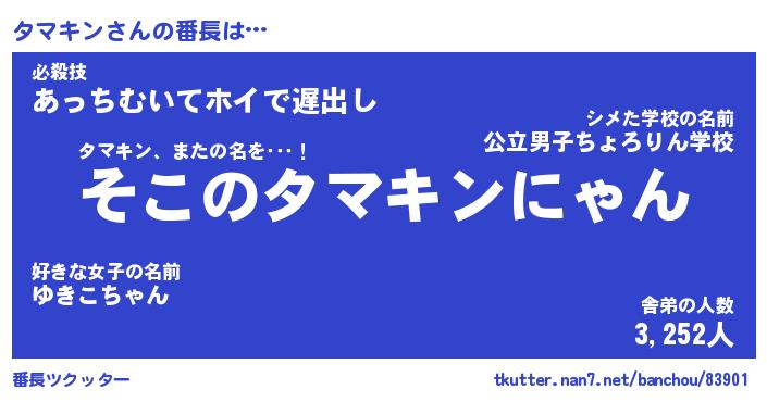 | 意味不明あだ名 | 『ペロリンタマキン』『永久保存タマキン』 |