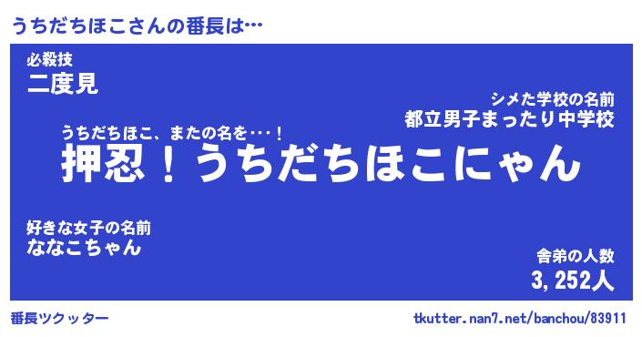 | 2回繰り返すあだ名 | 『うちうち』『ううちち』『ぼーぼー』 |