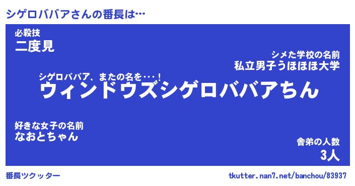 | 伝説のあだ名 | 『伝説のスナイパーシゲロババア』 |