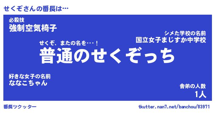 | ヒーロー風カッコイイあだ名 | 『スーパーセクゾ』『ウルトラせくぞマン』 |