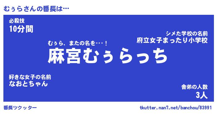 | ヒーロー風カッコイイあだ名 | 『スーパームゥラ』『ウルトラむぅらマン』 |