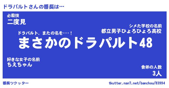 | ヘコむあだ名 | 『ドラっふぃ~』『つくし』『ドラお』 |