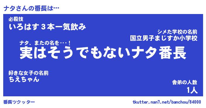 | 2回繰り返すあだ名 | 『ナタナタ』『ナナタタ』『ぬれぬれ』 |