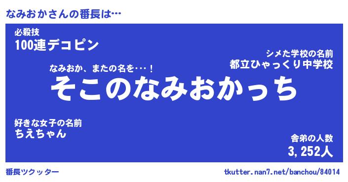 | ヒーロー風カッコイイあだ名 | 『スーパーナミオカ』『黄金騎士ナミ』 |