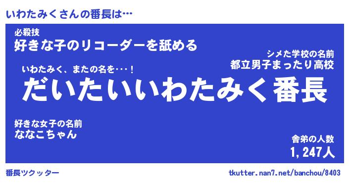 | ピコ太郎風あだ名 | 『イコ太郎』『ピイ太郎』『イワ八郎』 |