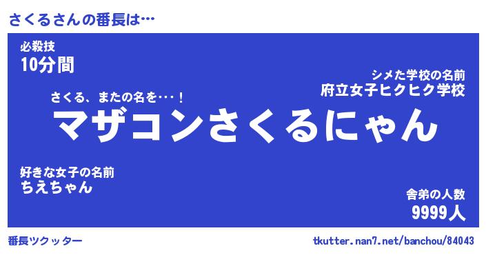 | ヒーロー風カッコイイあだ名 | 『スーパーサクル』『ウルトラさくるマン』 |