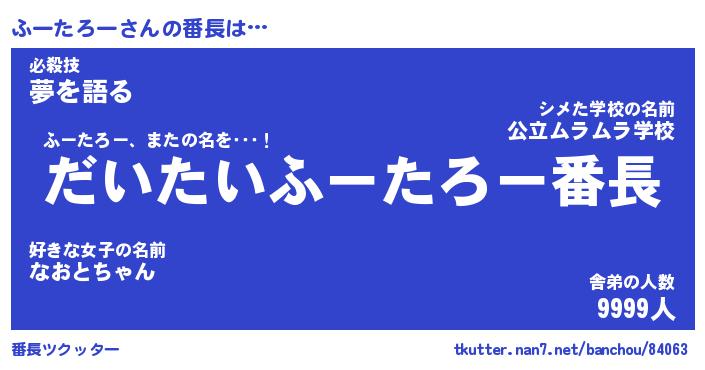 | ファンタジー風あだ名 | 『フーフェル』『エターナルフータローー』 |