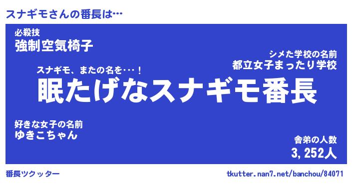 | ファンタジー風あだ名 | 『スナフェル』『エターナルスナギモー』 |