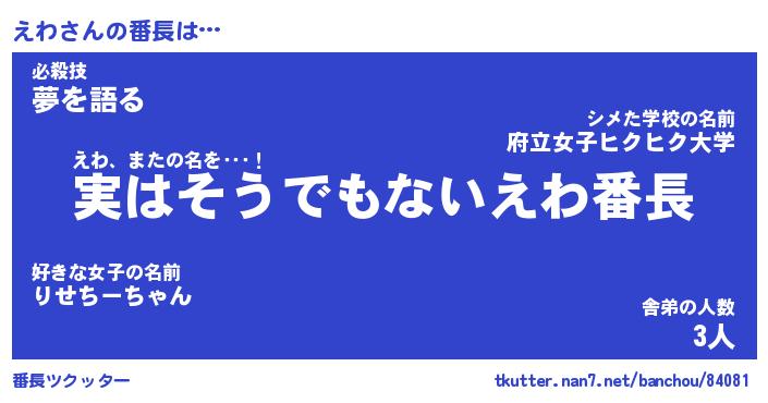 | ヘコむあだ名 | 『えわもー』『豆乳』『えわっ子』 |