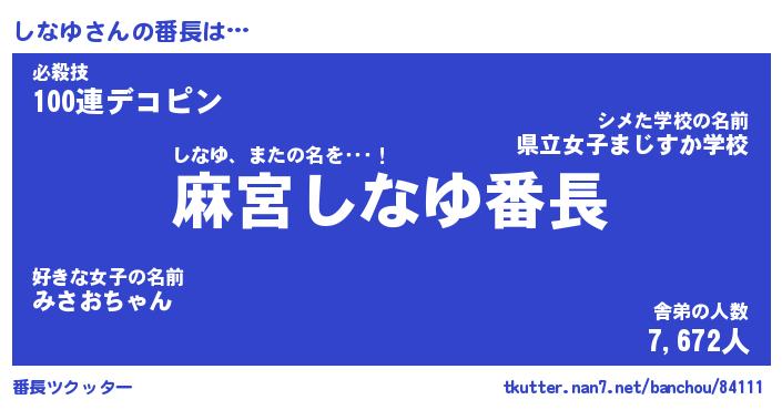 | 2回繰り返すあだ名 | 『しなしな』『ししなな』『あんあん』 |