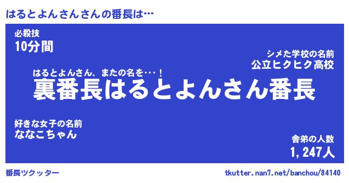 | 伝説のあだ名 | 『不死鳥のスナイパーはるとよんさん』 |
