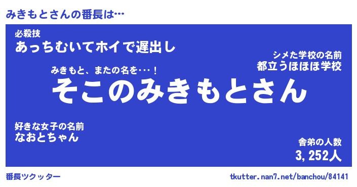 | 意味不明あだ名 | 『ペロリンみきもと』『永久保存みきもと』 |