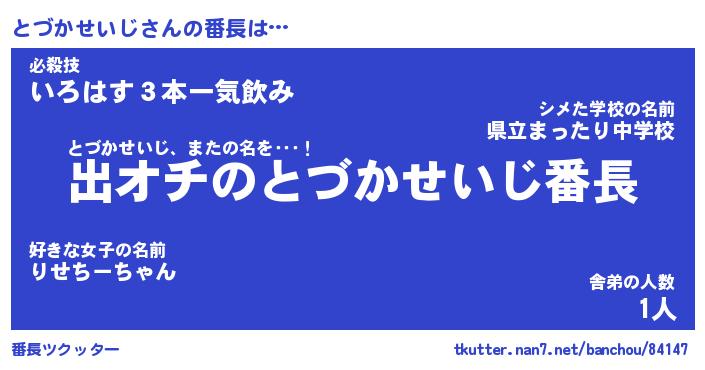 | 肩書あだ名 | 『とづかせいじ店長』『とづかせいじ班長』 |