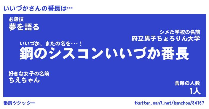 | 意味不明あだ名 | 『ペロリンいいづか』『永久保存いいづか』 |