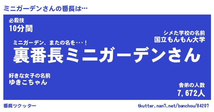| ヒーロー風カッコイイあだ名 | 『スーパーミニガーデン』『魔戒騎士ミニ』 |