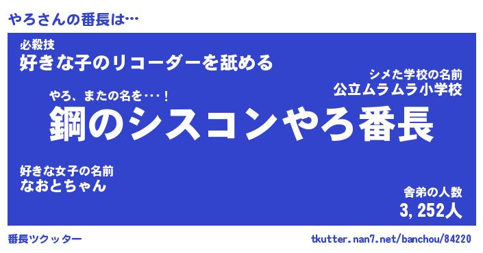 | ピコ太郎風あだ名 | 『ヤコ五郎』『ピヤ六郎』『ヤロ三郎』 |