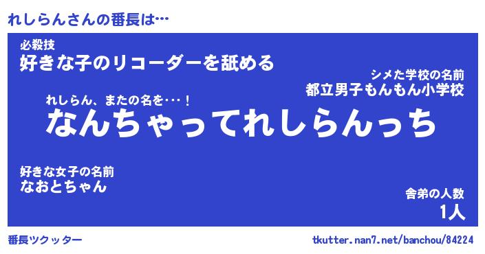 | 意味不明あだ名 | 『ペロリンれしらん』『永久保存れしらん』 |
