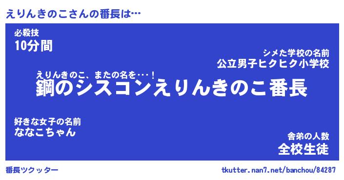 | 伝説のあだ名 | 『封印されしスナイパーえりんきのこ』 |