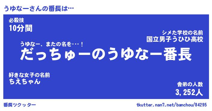 | 意味不明あだ名 | 『ペロリンうゆなー』『永久保存うゆなー』 |