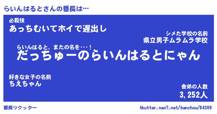 | 男性向けラノベタイトル風あだ名 | 『らいんはるとの憂鬱』 |