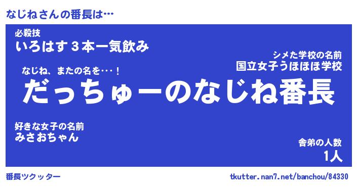 | ヘコむあだ名 | 『なじにー』『なまこ酢』『なじっぺ』 |