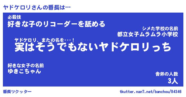 | ヘコむあだ名 | 『ヤドもー』『酢こんぶ』『ヤドっぺ』 |