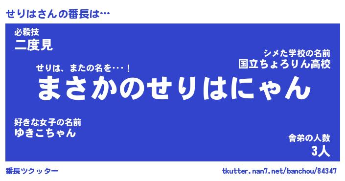 | 意味不明あだ名 | 『ペロリンせりは』『せりはフォーエバー』 |